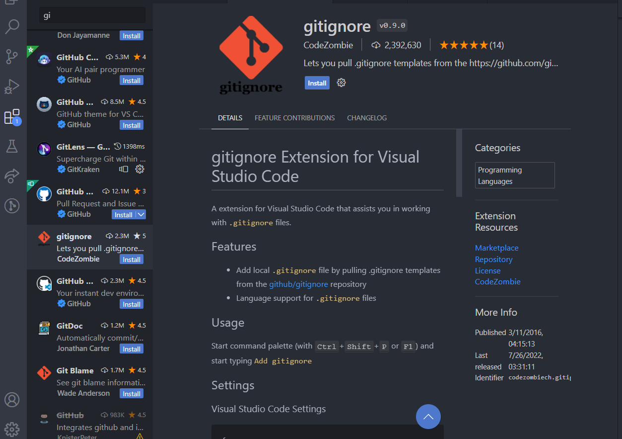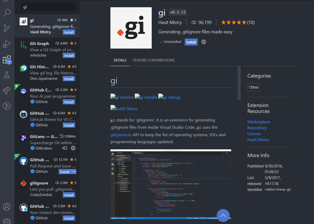 대표적으로 문서에 나와있는 gi나 gitignore가 있다. 활용법은 각각 상세설명에 나와있다.