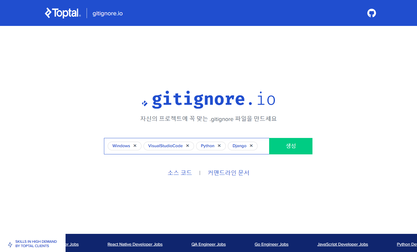 Gitignore.io는 Git 레포지토리용 .gitignore 파일을 만드는 데 도움이 되도록 설계된 웹 서비스이다.