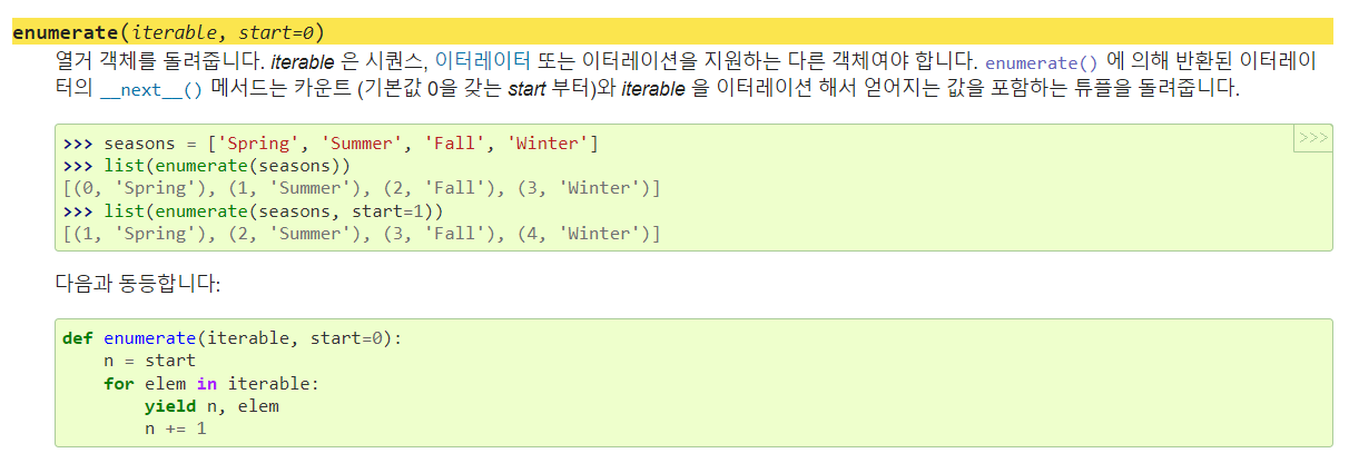 https://docs.python.org/ko/3/library/functions.html#enumerate